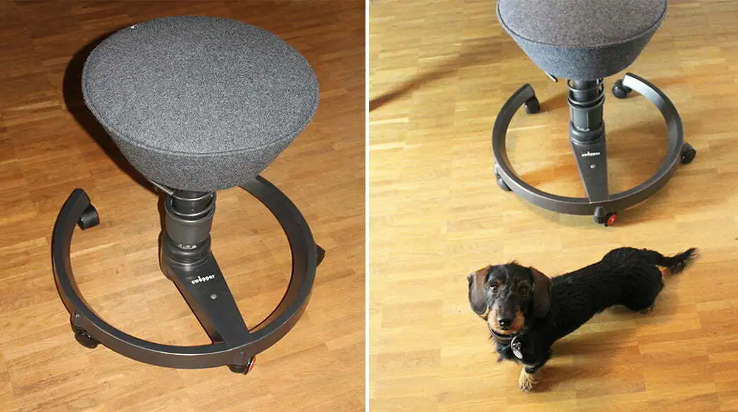 Das Design des Swoppers gefällt mir gut. Der Platzhirsch ist mit einem strapazierfähigen Filz überzogen. Mein Modell hat Gleitrollen, damit ich ihn ohne große Mühe auch in einen anderen Raum bugsieren kann. In der Testphase habe ich auch immer wieder meinen alten Bürostuhl ausprobiert, aber der kommt beim Sitzkomfort nicht mit dem Swopper mit. Zugegeben: Der gesunde Bürostuhl ist nicht gerade günstig. Man bekommt ihn ab ca. 560 Euro. Aber langfristig gesehen ist diese Investition in die eigene Gesundheit diesen Preis wert. Ach ja – mein Hexenschuss war ganz schnell verschwunden und ist bisher nicht wieder aufgetreten.