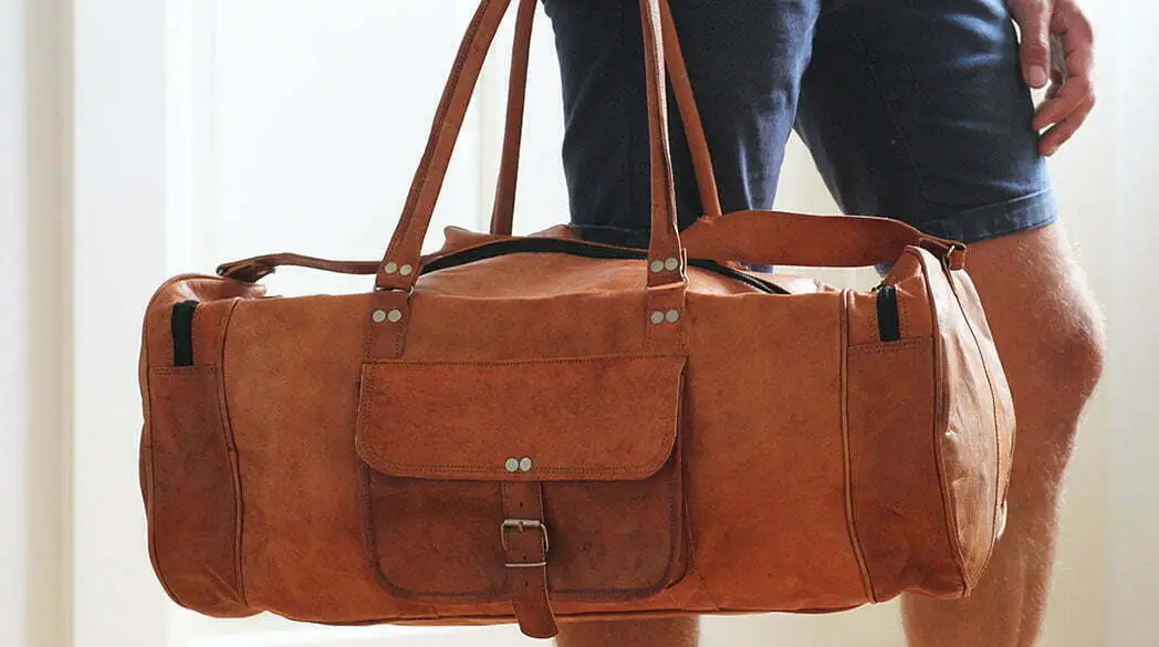 Und warum sind die Taschen jetzt so günstig? Natürlich, ein Grund ist, dass die Taschen nicht hierzulande hergestellt werden. Gusti-Leder arbeitet jedoch auch ohne Zwischenhändler und Subunternehmen. Da die Produzenten vor Ort ihre benötigten Materialien ebenfalls von dort ansässigen Lieferanten beziehen, gibt es außerdem nur kurze Transportwege. Wir haben uns für den Weekender „Michael“ entschieden, der gerade einmal 78 Euro kostet. Die Reisetasche aus naturgegerbtem Ziegenleder wird in Indien hergestellt und überzeugte uns vor allem mit ihrem klassischen Design und der schönen Vintage-Patina. Was sofort auffiel, war der starke Geruch nach Ziegenleder. Der sollte sich aber erfahrungsgemäß in den nächsten Tagen legen.