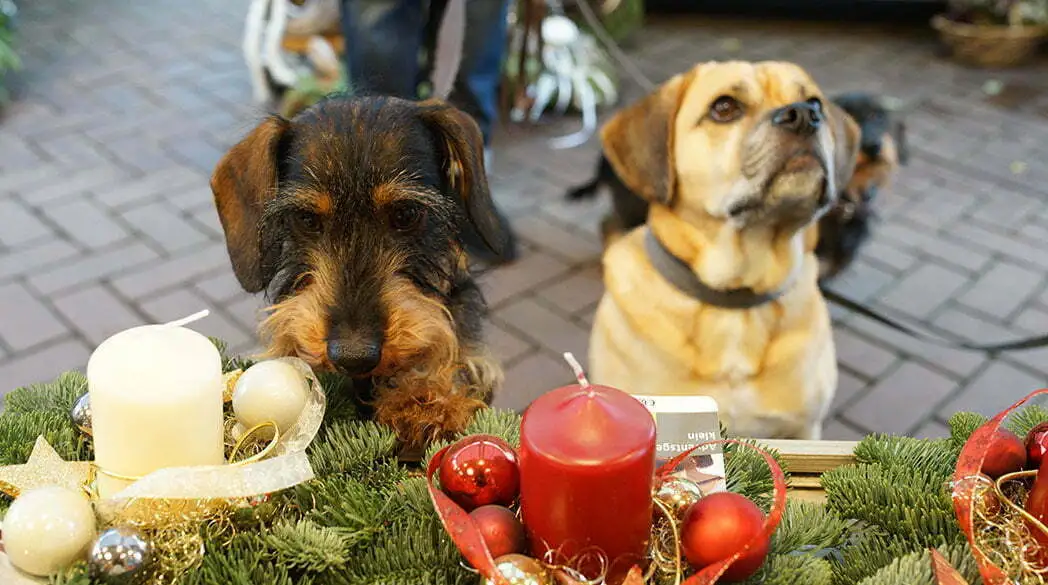 Sehr Ihr diesen Blick? Kalle (links) hat eine Weihnachtskugel entdeckt.