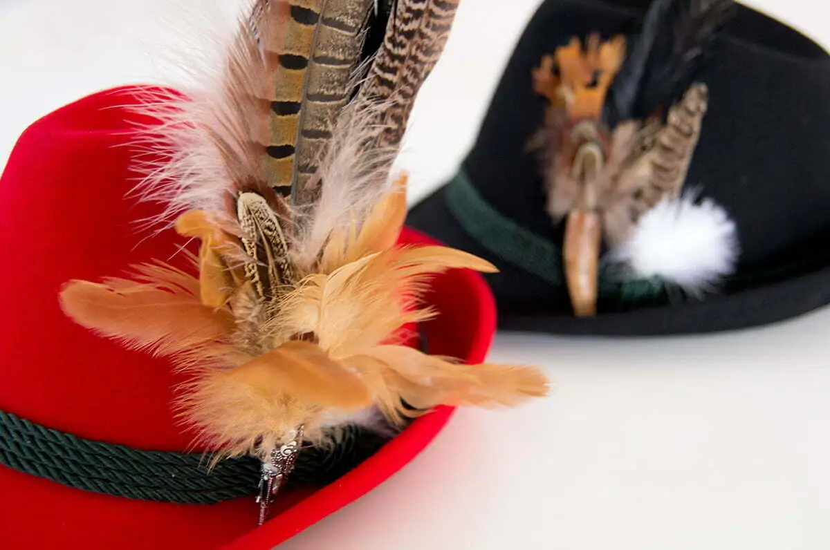 Die Hüte vom Münchner Trachtenlabel Alpenflüstern sind aus echtem Wollfilz gefertigt, die Anstecker mit Fasanenfeder oder echtem Horn wurden in liebevoller Handarbeit hergestellt. Sie können von Euch durch den Broschenverschluss auch separat als Hingucker am Janker oder Blazer getragen werden. Auch der Trachten-Haarkamm ist aus echten Federn gefertigt. Natürlich passt der Trachtenschmuck nicht nur auf der Wiesn sondern auch im Alltag!