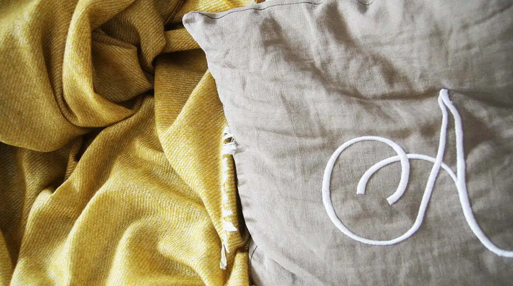 Ich habe ja eine Vorliebe für Alltagstextilien aus hochwertigen und langlebigen Naturmaterialien. So sind unsere Kissen, Geschirrtücher, Vorhänge und Tischdecken aus Leinen gefertigt. Einen wunderbaren Kontrast zu diesem eher gröberen Material bildet edles Kaschmir. Und so bin ich ganz begeistert, welch schöne Einheit unsere neue gelbe Kaschmirdecke von Eagle Products mit unseren Leinenkissen von Mein Monogramm eingeht.