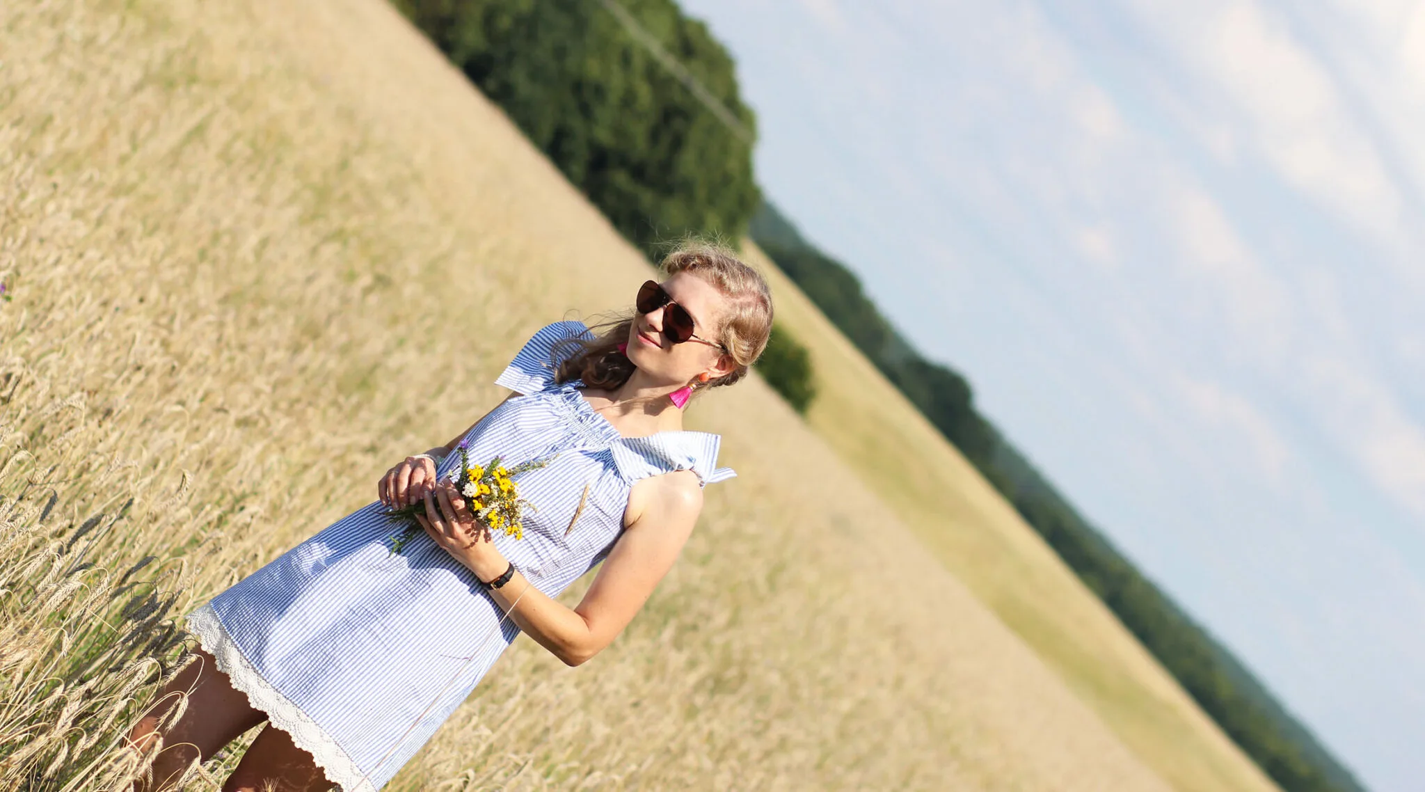 Ich weiß ja nicht wie es Euch so geht, aber ich bin schon richtig in Herbststimmung. Statt nach Aperol Spritz und Melonensalat steht mir der Sinn wieder mehr nach heißem Tee und Karottenkuchen. Doch auch der Herbst wird ja manchmal noch richtig herrlich warm, und so möchte ich Euch – obwohl die Saison eigentlich vorbei ist – noch ein letztes hochsommerliches Outfit aus unserem Ostseeurlaub zeigen. Wir haben während einer Radltour an einem der letzten Kornfelder angehalten, das noch nicht gemäht wurden. Ich liebe diese Farben im Spätsommer.