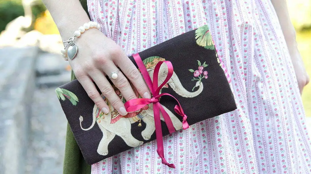 Die zauberhafte Elefanten-Clutch mit pinken Seidenbändchen und karierten Innenstoff stammt übrigens von dem kleinen Label Julianes Manufaktur. In liebevoller Handarbeit produziert Juliane Jdanoff wunderschöne Unikate, beispielsweise Cardboards, Stoffkörbe, Taschen und Schmusekissen – schaut doch mal bei ihr vorbei.