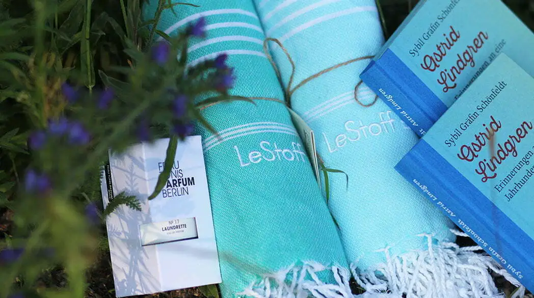 Sommerzeit, Reisezeit. Wohin es bei Euch auch gehen mag – an die See, in die Berge oder (nur) in den heimischen Garten – wir haben ein kleines aber feines, meerblaues Set für Euch zusammengestellt, dass Euch die schönen Sonnenstunden garantiert noch mehr versüßen wird. Gewinnen könnt Ihr eines von zwei Paketen mit jeweils einem Hamamtuch von Le Stoff, einem Buch über Astrid Lindgren sowie dem neuen Duft von Frau Tonis Parfum Berlin.