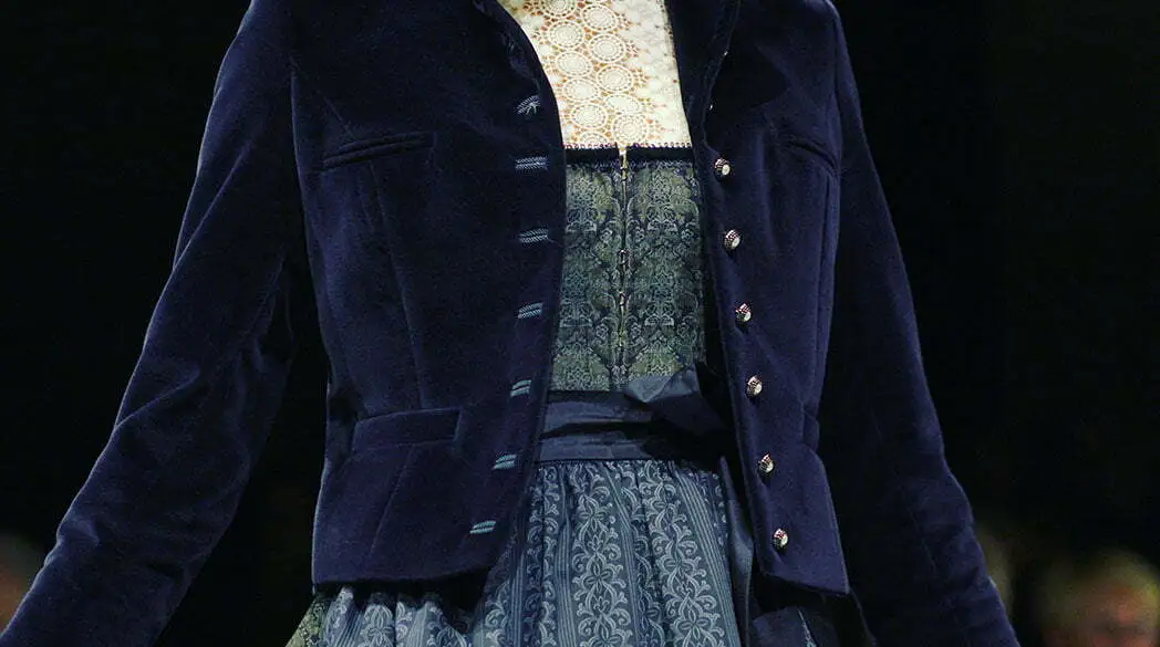 Bei Kinga Mathe spielt Marineblau eine große Rolle – hier wunderschön kombiniert mit Tannengrün und Boredaux – da kommt man doch schon in Herbststimmung oder? Sehr hübsch finde ich auch die Stehkragen-Blusen, überhaupt ist mir aufgefallen, dass die Dirndl nicht mehr so freizügig ausfallen, mir gefällt’s!