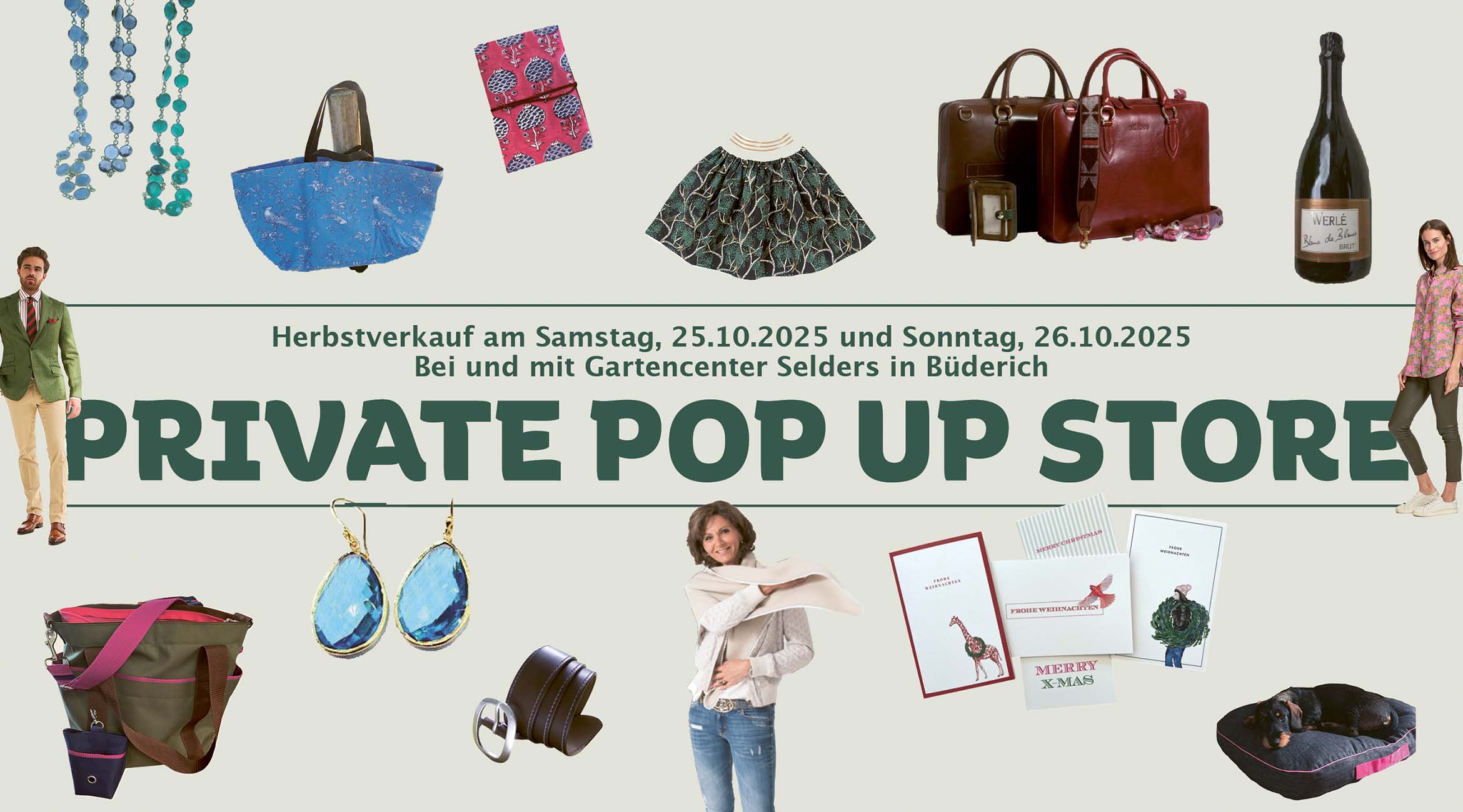Inzwischen schon ein Klassiker ist der Private Pop-up-Store im Meerbusch. Am Samstag, 25. Oktober (11-18 Uhr) und Sonntag, 26. November (11-16 Uhr), könnt Ihr im Gartencenter Selders in Büderich wunderbares für Haus, Hof und Kleiderschrank erwerben. Mit dabei sind viele Lady-Blog-Lieblinge wie Alexas Alphabet, E. von Daniels, Pink Tuk Tuk, Sitz & Sack, ellabee und Uccelli.