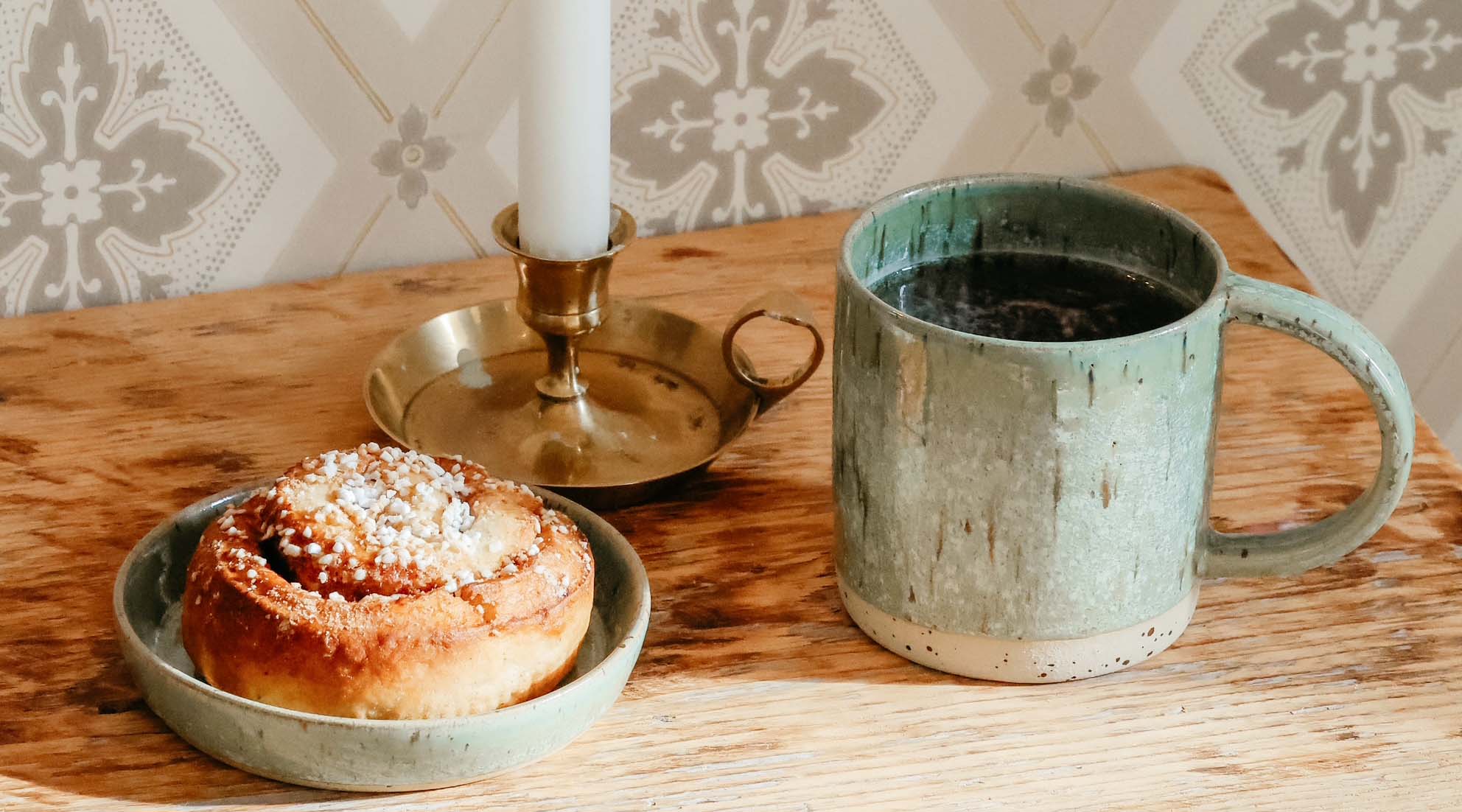 Immer auf der Suche nach besonderer Keramik? Dann habe ich einen feinen Tipp für Euch! In Örebro bin ich in dem winzigen, wunderbar entschleunigten Tehuset gelandet – und dort auf die wunderschönen Arbeiten der schwedischen Keramikerin Maria Pauly gestoßen. Maria lebt und arbeitet in einem kleinen Haus im Stadtteil Rynninge in Örebro, wo sich auch ihre Keramikwerkstatt befindet. Inspiriert von der Natur und von unterschiedlichen Umgebungen fertigt sie sowohl Alltagskeramik als auch dekorative, skulpturale Vasen und Formen. Ihre Entwürfe entstehen oft ganz intuitiv: Manche Formen werden skizziert, viele entwickeln sich jedoch direkt im Prozess des Drehens und Gestaltens – ein Ansatz, der ihren Arbeiten eine besondere Lebendigkeit verleiht. Die Wahl fiel mir nicht leicht, aber schließlich habe ich mich für eine grüne Tasse (natürlich!) und ein passendes kleines Tellerchen entschieden – die perfekte Kombination für eine Tasse Tee und eine frisch gebackene Zimtschnecke. Seitdem gehören beide Stücke zu meinen liebsten Alltagsbegleitern. Maria Pauly wünscht sich, dass ihre Keramik unseren Alltag bereichert – und genau das tut sie!