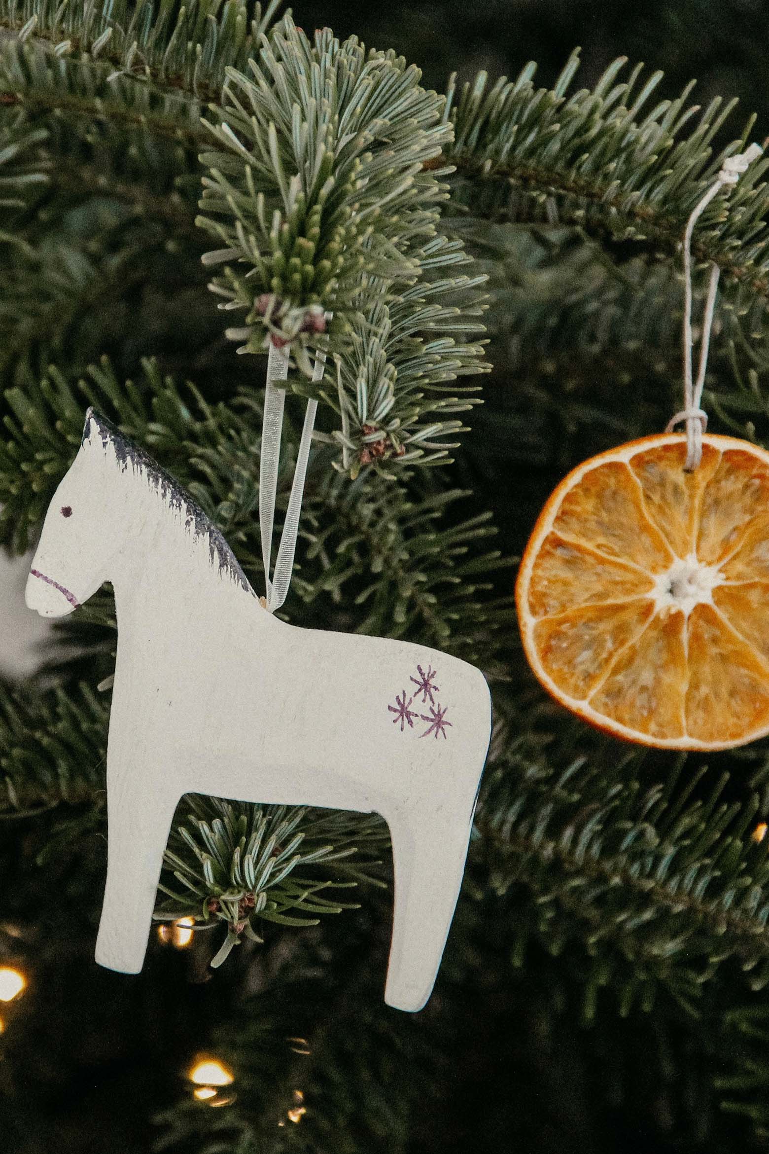 10. Dalapferde & Strohsterne: Seit Jahren heiß geliebt und mühsam zusammengesammelt sind meine Dalapferdchen aus Holz von Maileg. Die ikonischen Pferde haben ihren Ursprung bereits im 17. Jahrhundert in der schwedischen Provinz Dalarna, wo sie als Kinderspielzeug aus einem Stück Holz geschnitzt wurden. Heute sind die Pferdchen mit ihren traditionellen bunten Bemalungen beliebte Schweden-Souvenirs für Touristen und ein Nationalsymbol. Uns bringen sie seit Jahren Schwedenfeeling an den Weihnachtsbaum! Und Strohsterne gehören ohnehin an jeden Baum!