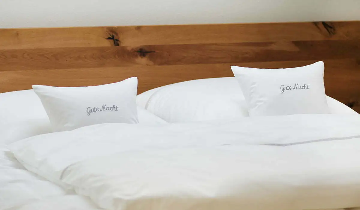 Das Schlafzimmer ist sehr geschmackvoll in Braun und Weißtönen gehalten und natürlich mit Bett und Bettwäsche von Bettenrid ausgestattet