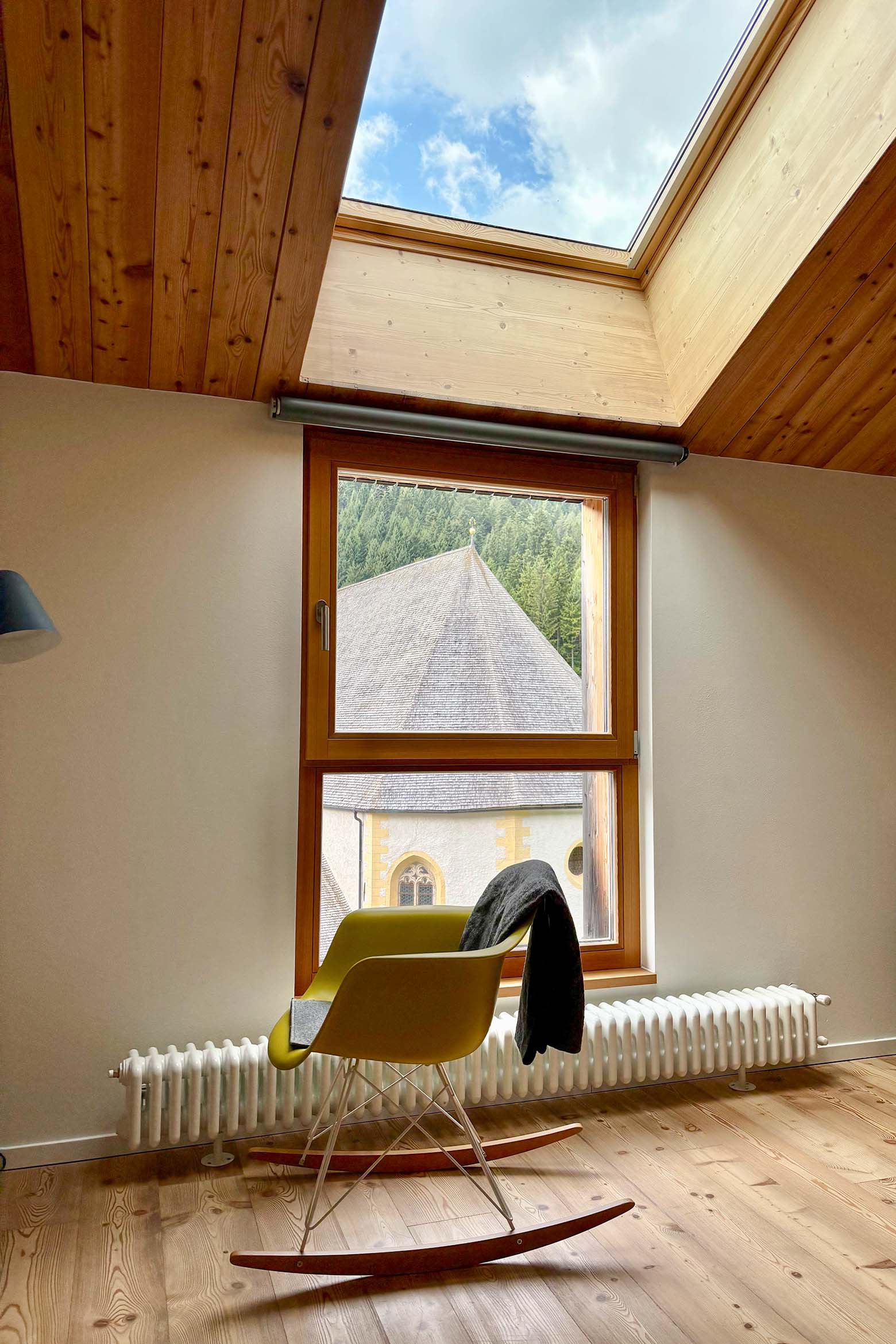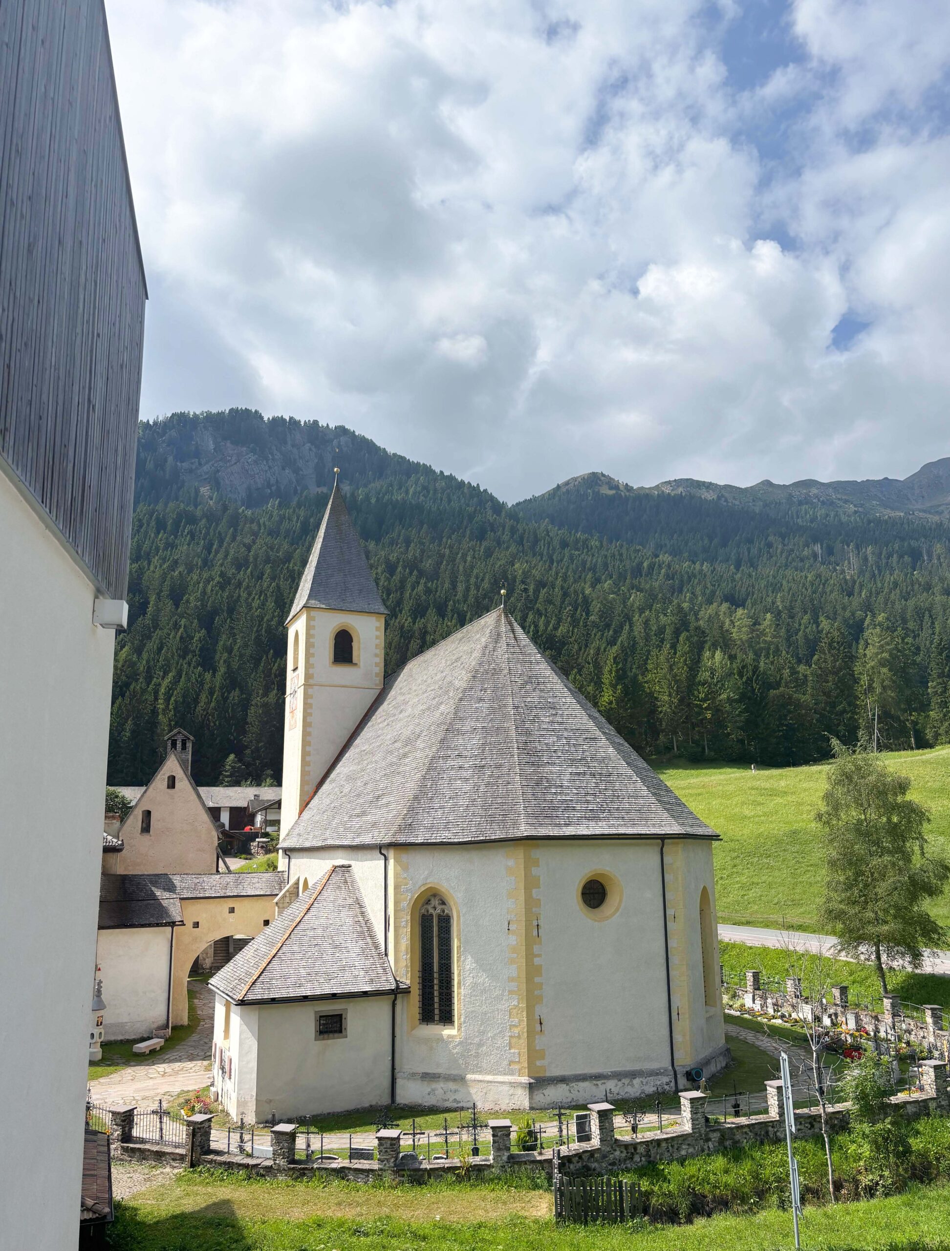 Wir haben Ende August und Anfang September nicht nur drei Wochen auf Korsika verbracht, sondern auch zwei Zwischenstopps in Südtirol eingelegt. Die wunderbare Pension Leuchtenburg habe ich Euch ja bereits vorgestellt. Sehr wohlgefühlt haben wir uns auch im „Zum Hirschen“ auf 1350 Metern Höhe, im winzigen Dörfchen Unsere Liebe Frau im Walde. Viel gibt es hier nicht: ein paar Häuser, eine Grundschule und – eine der bekanntesten Wallfahrtskirchen im Alpenraum! Schon um 1184 kehrten Pilger in der Herberge gegenüber ein, dem heutigen Hotel Zum Hirschen. Das moderne Refugium von Mirko Mocatti und seiner Familie hat sich seine jahrhundertealte Aura als Pilgerstätte und Kraftort bewahrt. Die Einrichtung ist minimalistisch, Weiß- und Grautöne dominieren, dazwischen gezielte Farbakzente. Kaum Bilder, kein Schnickschnack, dafür ausgewähltes Design und der Blick auf die Kirche. Unser Highlight war aber ganz klar das köstliche Südtiroler Essen: Das Mehrgänge-Menü am Abend gehört zu den besten, die wir je gegessen haben. Gekocht wird ausschließlich mit regionalen, saisonalen Zutaten und einer Fülle an Wildkräutern.