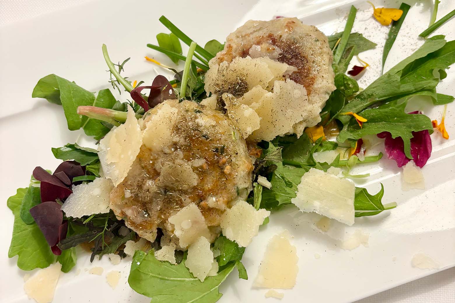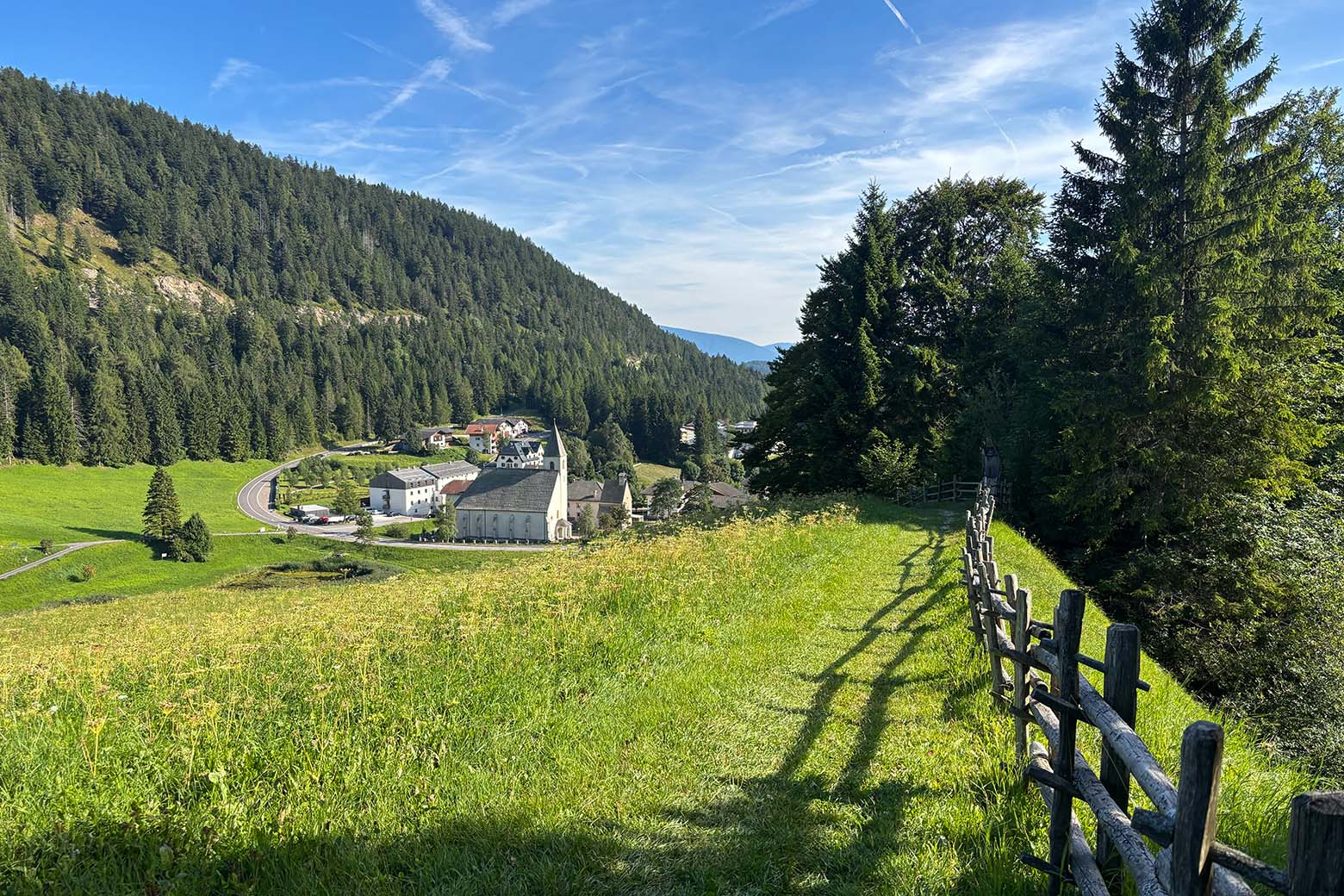 Schon der Aperitif ist ein kleines Kunstwerk: Weißwein, gekocht mit Petersilienwurzel, trifft auf Brennnesselsirup, Prosecco und einen Fichtenzweig – leicht bitter, unglaublich aromatisch. Danach folgt ein Menü, das so bodenständig wie raffiniert ist: warmes, selbstgemachtes Sauerteigbrot mit Pesto und Wacholderbutter, dazu ein Wurzel-Elixier nach Hildegard von Bingen, Hummus aus Auberginen mit Dinkelchips, Karotten-Quendel-Schaumsüppchen, Kräuterrisotto, Pressknödel mit Wildkräutersalat und Trentin-Grana-Spänen – und als Abschluss ein Sorbet aus Bienenhonig, Waldbeeren und Propolis*. Das Dörfchen Unsere Liebe Frau im Walde liegt übrigens an einem spannenden Ländereck: Hier treffen deutsche, tiroler und italienische Einflüsse aufeinander – und durch das Tal zieht sich der historische Gampenpass, im Mittelalter eine der wichtigsten Routen über die Alpen. Auch ein Teil des Südtiroler Jakobswegs führt am Dorf vorbei. Wir haben eine wunderbare Wanderung zur Laugenalm unternommen, auf der wir unzählige Pilze entdeckt haben. Zurück ging’s über den „Schöpfungsweg“, der seinem Namen wirklich alle Ehre macht. (du)